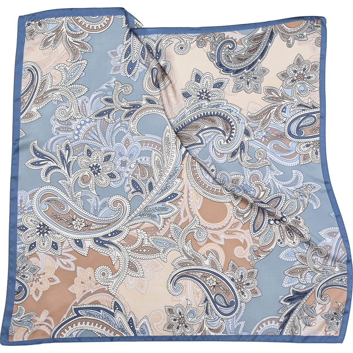 Kvadratisk tørklæde med paisley motiv og ensfarvet kant.
