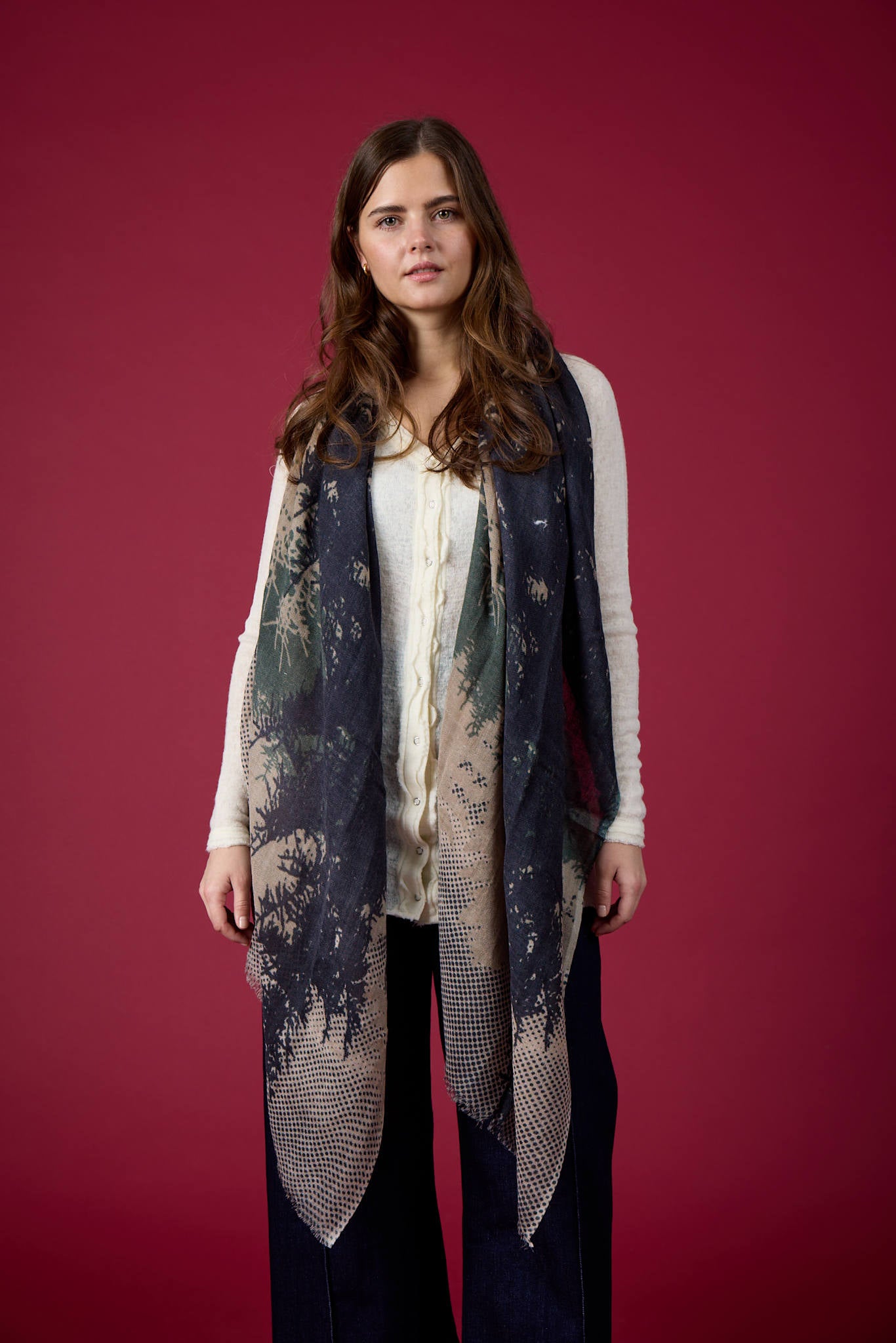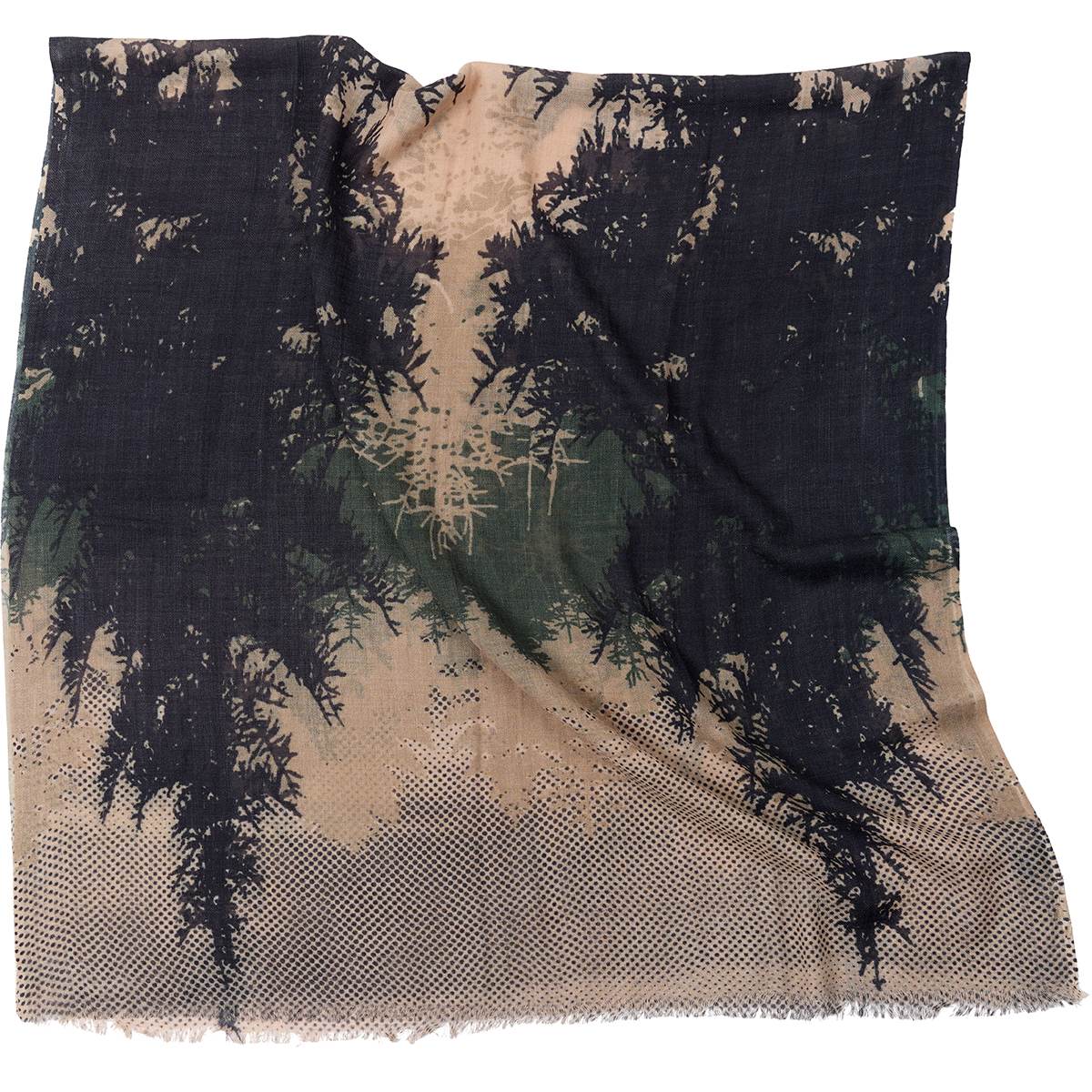 Großer, breiter und länglicher Schal aus weicher Wollqualität mit Kiefern-Print und offenen Kanten.