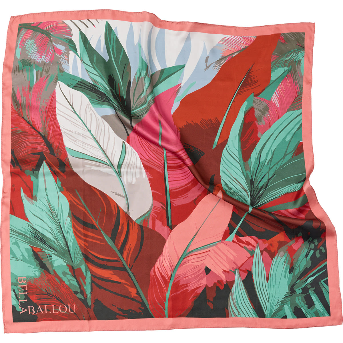 Square Silk scarf with a graphic leaf print and hand-stitched rolled edges.