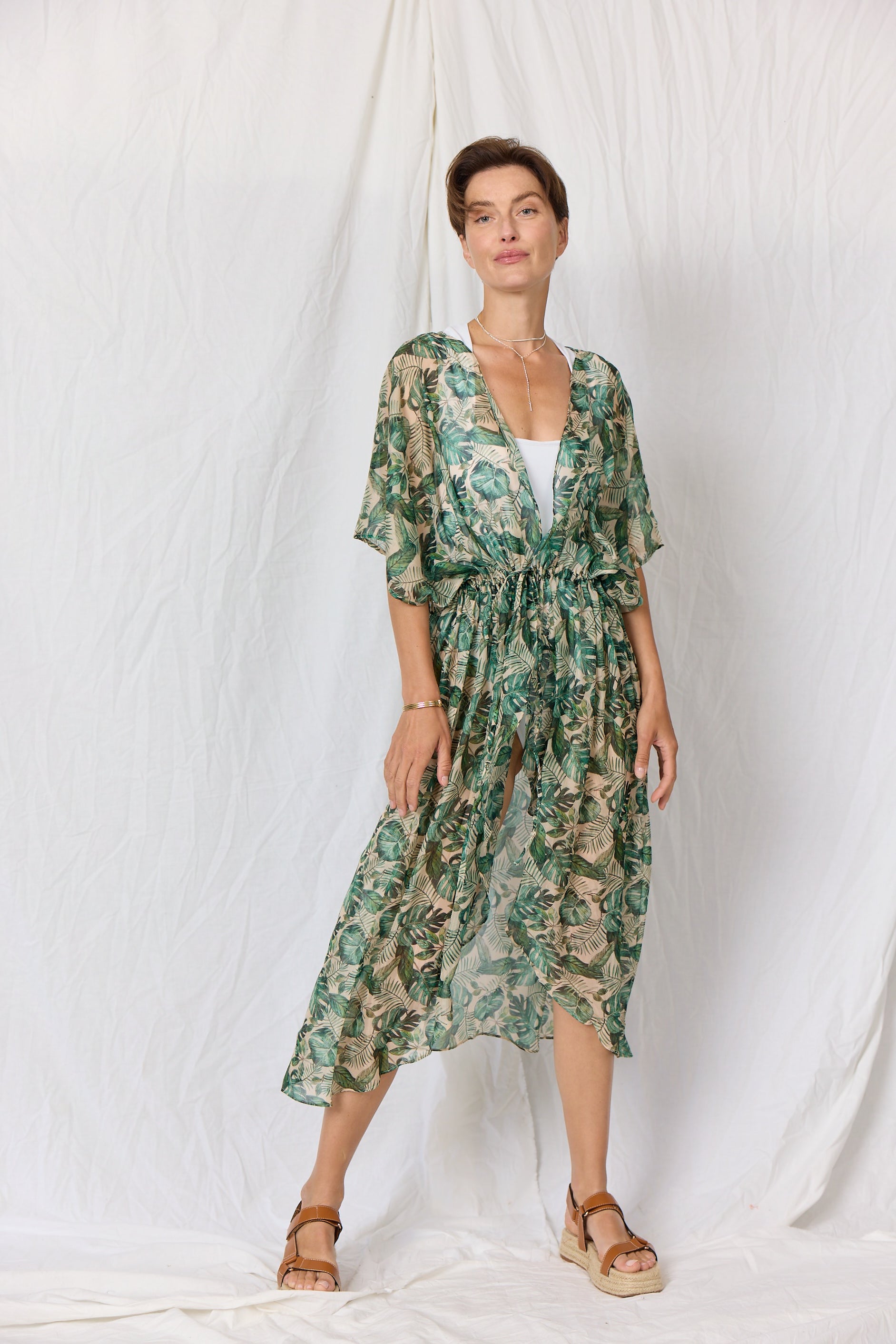 Beach Kaftan with 3/4 long sleeves and ties in a fluffy Polyester quality.