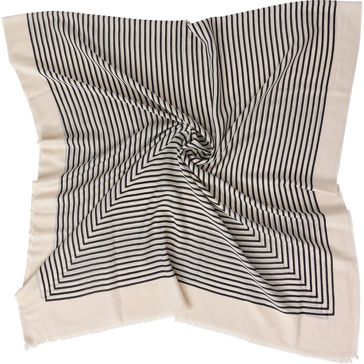 Large, elongated scarf in a fine soft wool/silk quality with graphic stripes and raw edges.