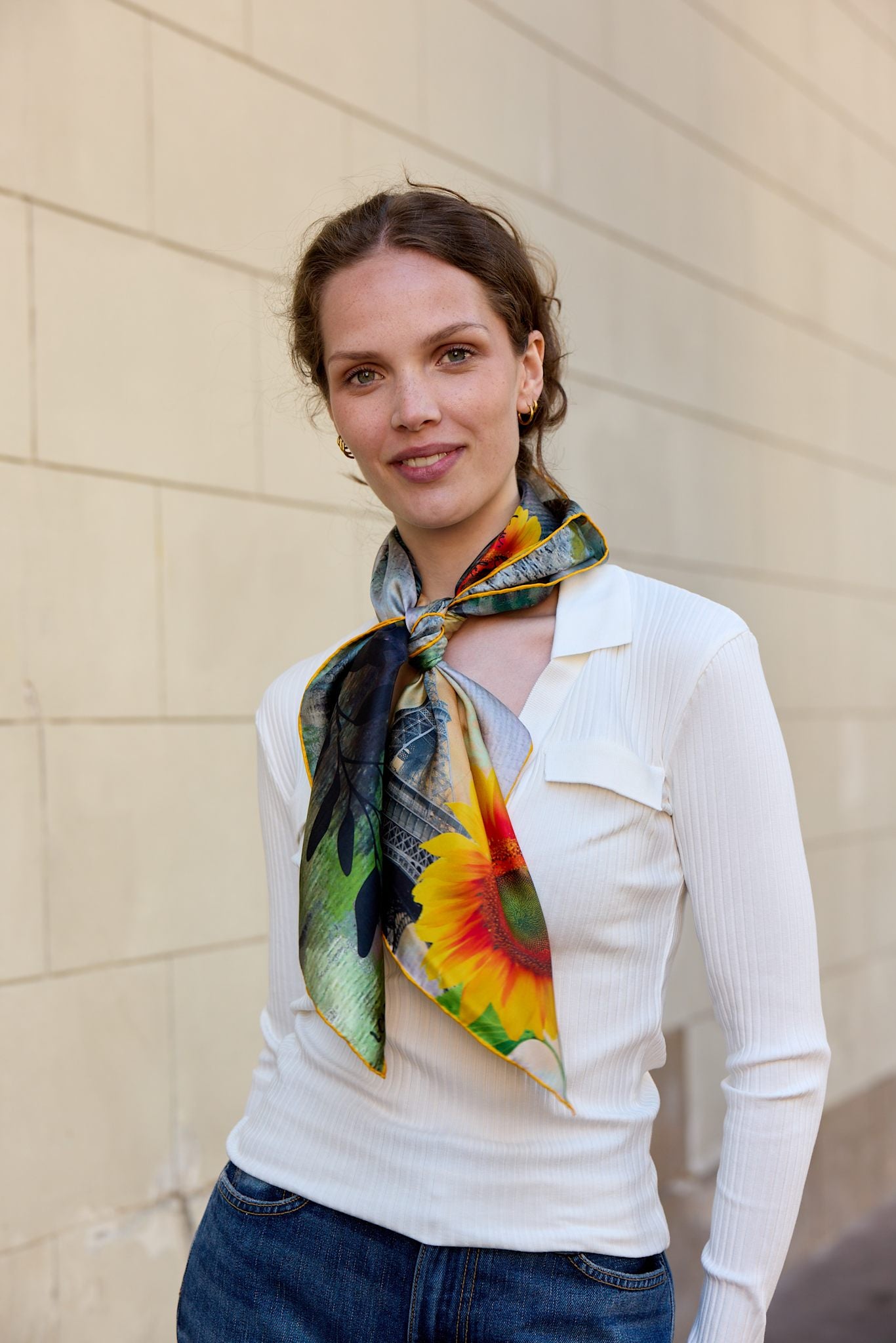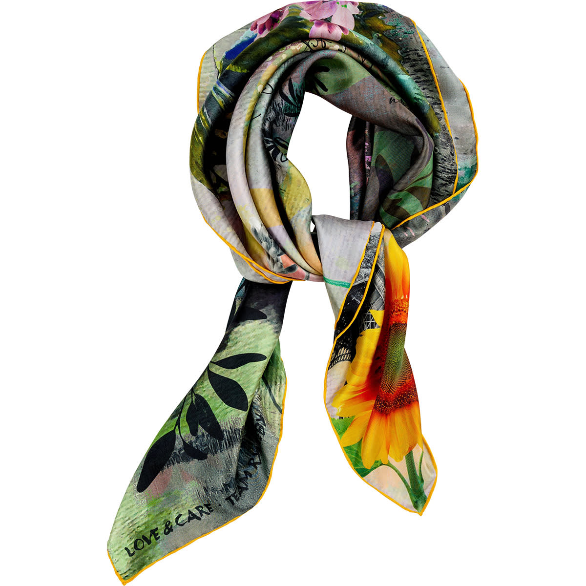 The Scarf combines a modern fashion print with elements inspired by the journey to Paris and the two projects supported by Team Rynkeby. The name LOVE&CARE reflects our shared values: support, care, hope, and community.