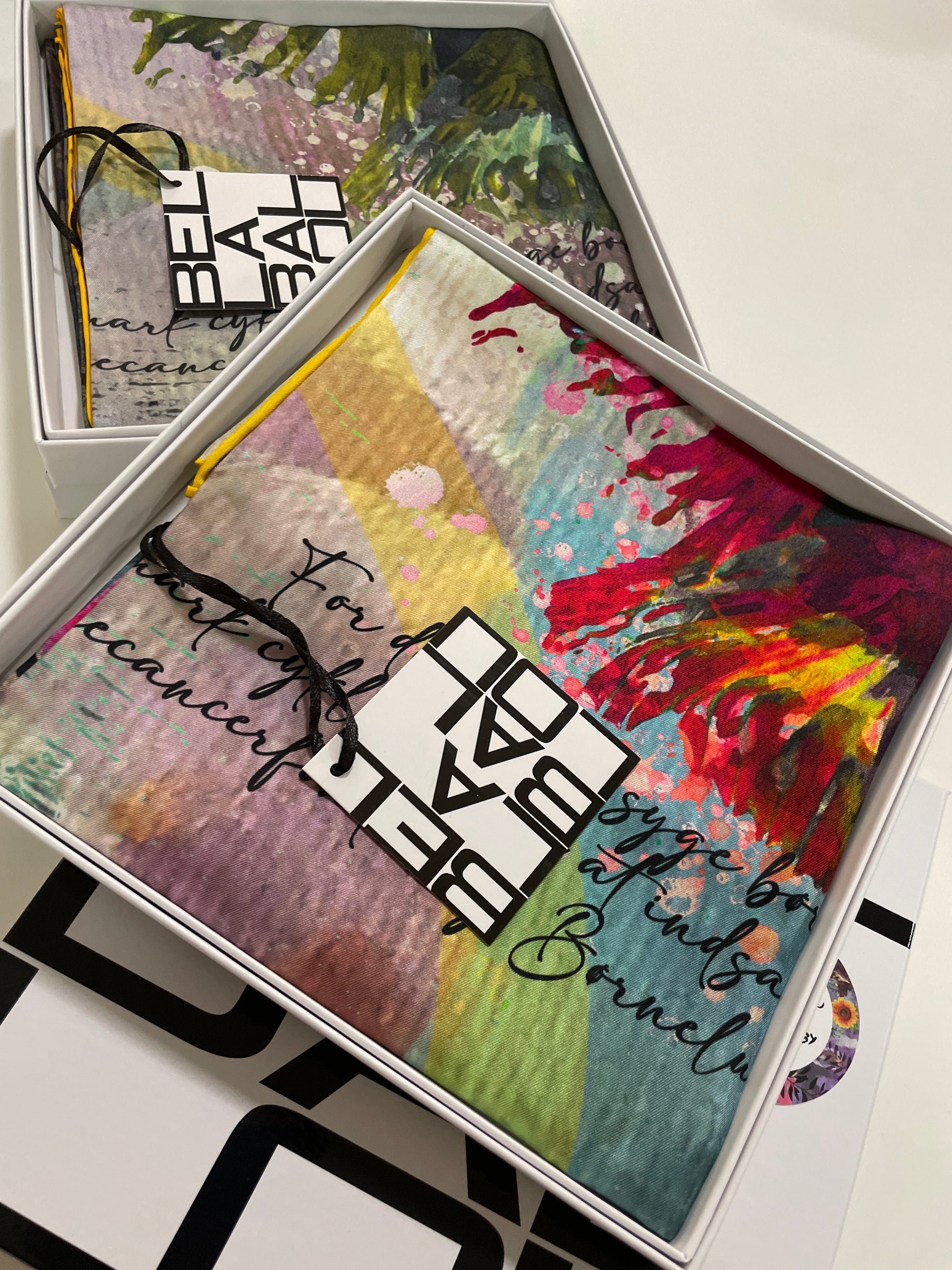 LOVE & CARE Scarf is available in two current color combinations and comes in an exclusive gift box. It is made from the softest Silk Twill and can be styled in many different ways, for example around the neck, in the hair, on a bag, as a silk top, a cool belt, or as a decorative bracelet or glasses chain.