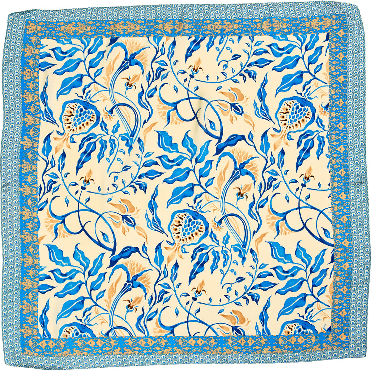 Kvadratisk tørklæde med abstrakt blomster motiv og ensfarvet kant.