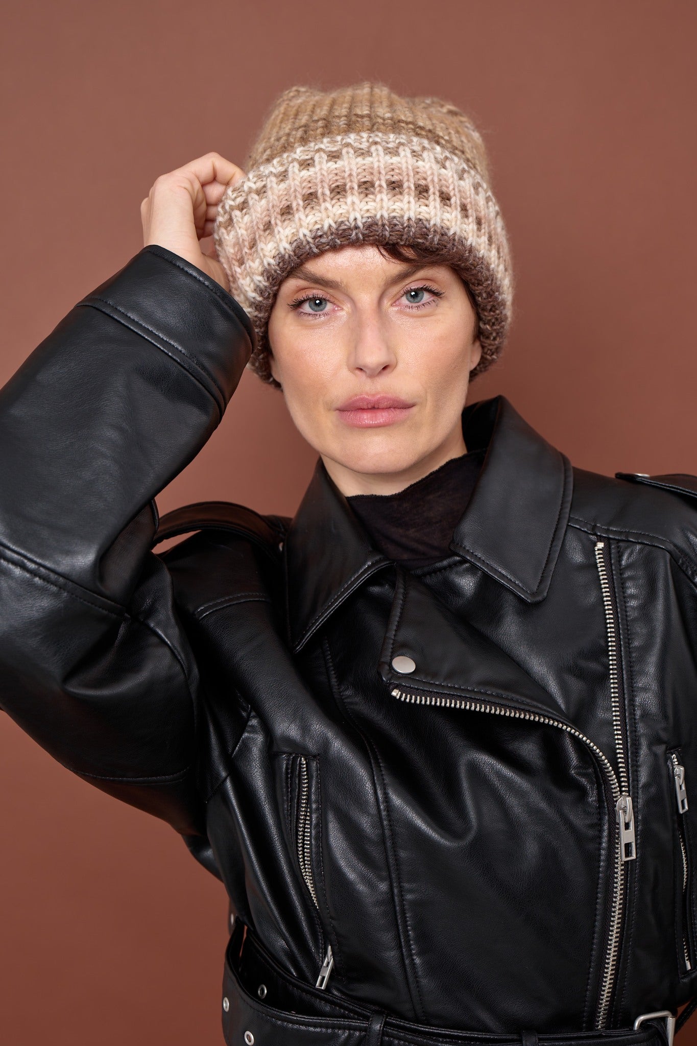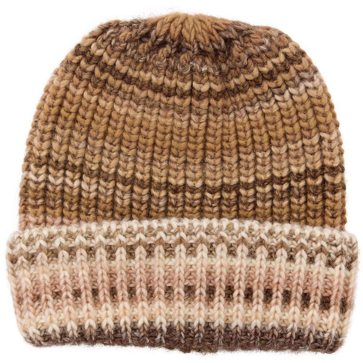 Striped knithat in a thick warm "space dyed" wool mix from Italy.