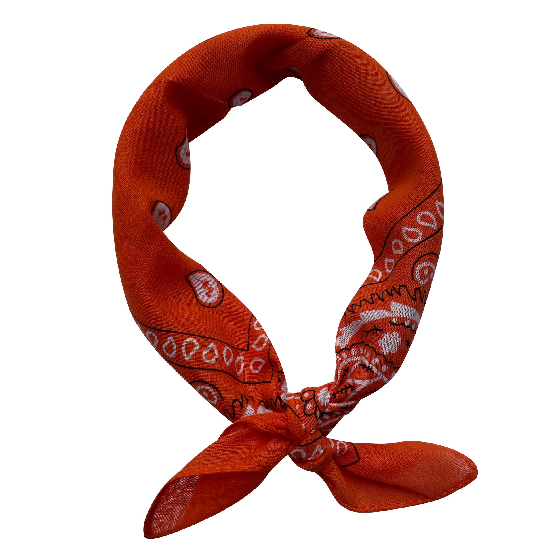 Lite firkantet bandanaskjerf med tradisjonelt sjalmønster i 100% bomull.