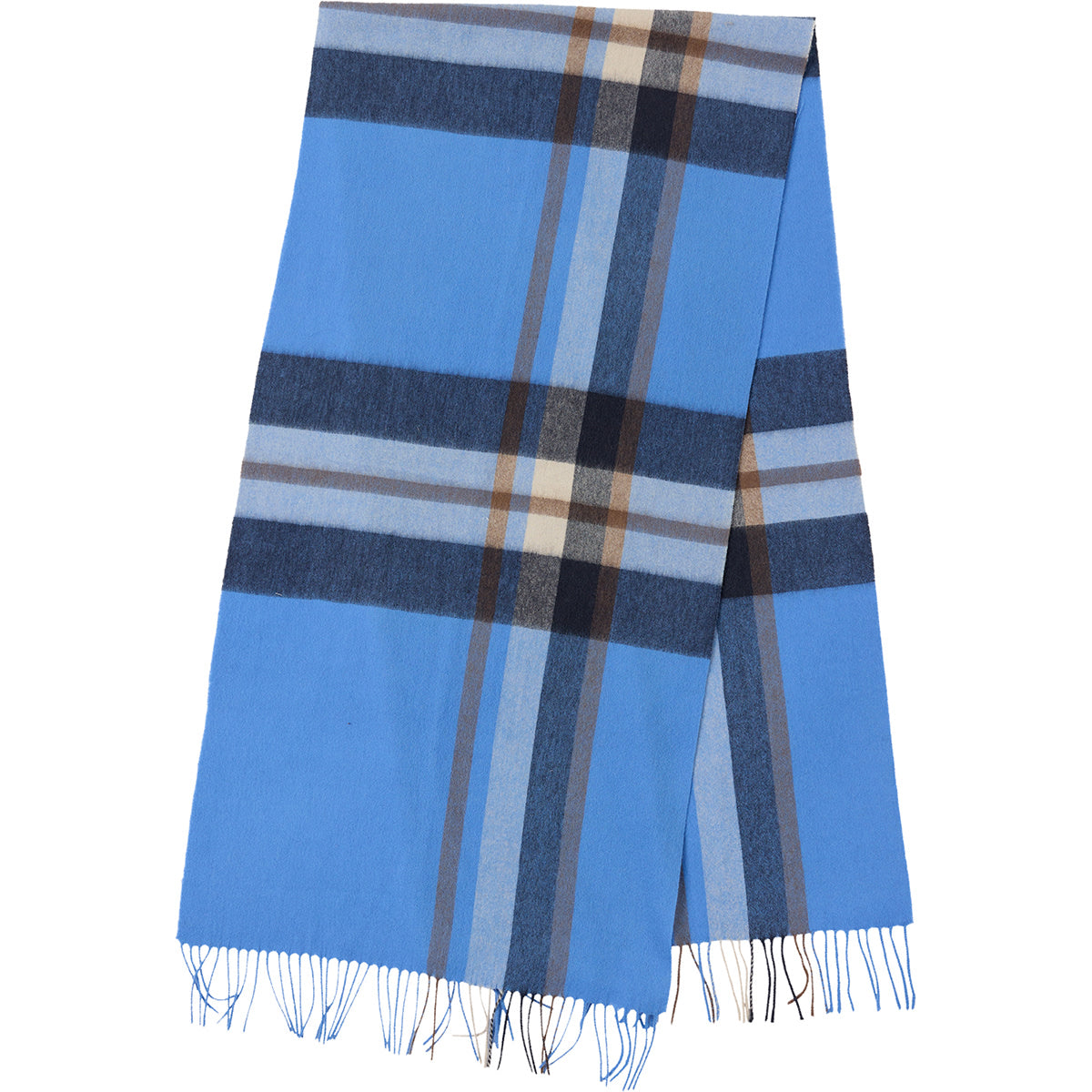 Aflangt, blødt og fyldigt garnindfarvet ternet uldtørklæde med frynser i enderne.