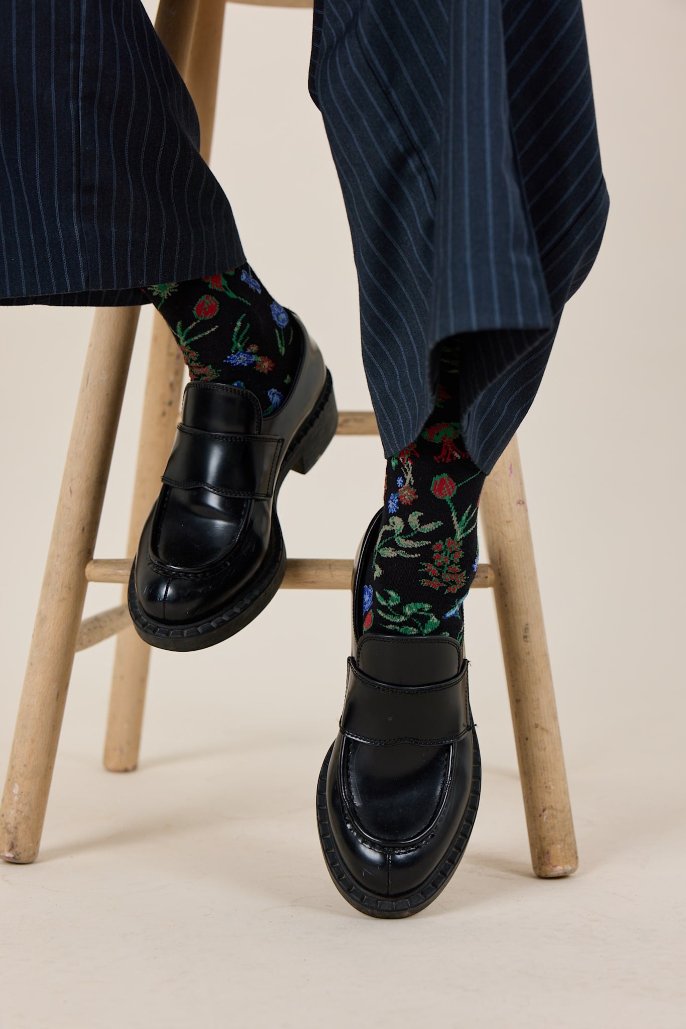 Strømper med blomster motiv i en blød Økotex certificeret bomuldskvalitet.
