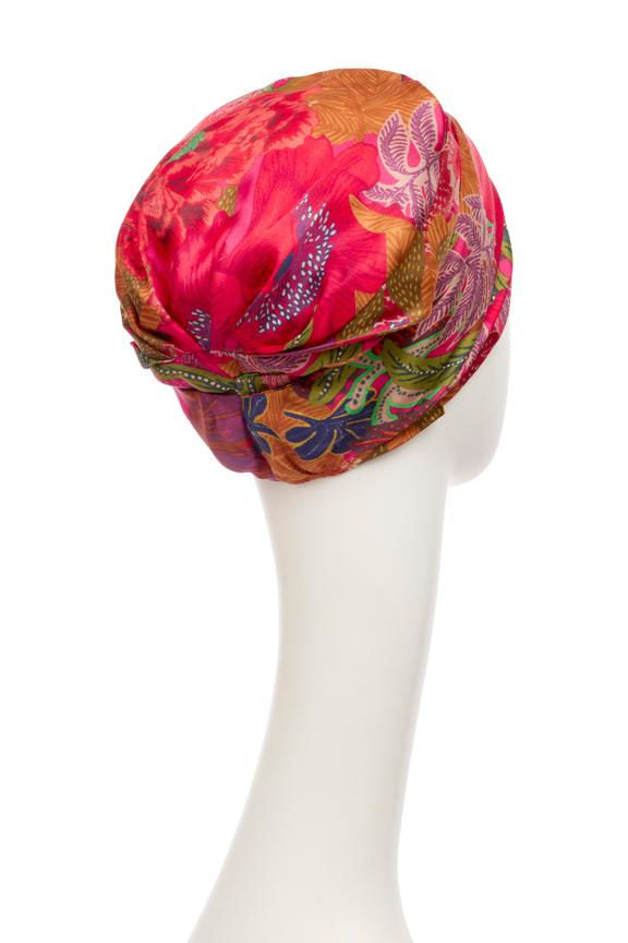Vacker och bekväm Sidensjalett med stort blommönster skapad i samarbete med Christine Headwear.